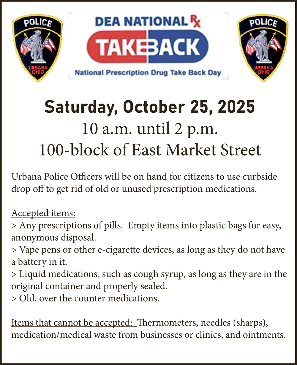 Ads for DEA National RX Takeback (October 25, 2025) in Urbana, OH