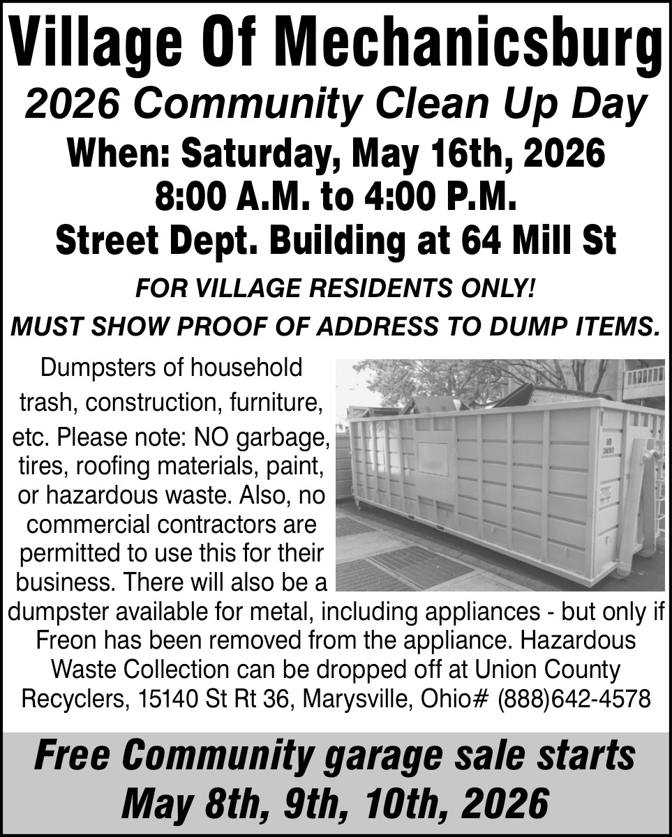 Mar 20, 2026. Village of Mechanicsburg Events Ads from Urban Daily Citizen